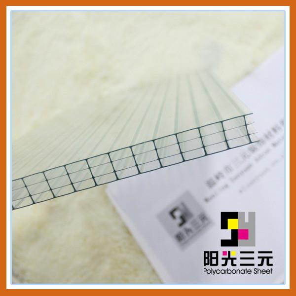 阳光板是一种综合性能极佳的工程塑料,具有杰出的物理,机械,电气和热性能,有良好的抗冲击,隔热,隔音,采光,防紫外线,阻燃等优点,广泛应用於公用,民用建筑的采光天棚,通道顶棚,高架路隔音墙,商场顶盖,植物温室等,是目前世界上最理想的一种阳光棚材料。主要应用住宅、商厦采光天幕、工厂厂房、仓库采光顶、体育场馆采光顶、广告牌、通道、停车棚、游泳池、温室覆盖、室内隔断、建筑采光、室内隔断/屏风、室内装潢、家具、浴室设计、温室应用、泳池上盖。
