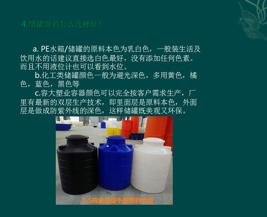 容大塑业正致力于进一步开发新产品,致力于中国滚塑行业的世界化,致力于客户与厂家双赢。容大塑料制品,坚持以客户需求为第一要素,坚持创新,不仅是产品的创新,更是服务于该行业的创新,也是一种对于滚塑行业的责任感和荣誉感的创新!毕节外加剂储罐生产厂家批发零售。
