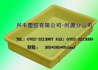 河源市兴丰塑胶有限公司–河源,源诚区,白田,主材:进口聚乙烯(PE)塑胶原料即全新PE料性能:一次成型内外光滑,具有良好的卫生性与抗紫外线能力,耐撞击,抗强震,不易老化,不长水藻,易冲洗,防鼠,防白蚁,安装移动方便.拉力好,不易爆口,便以周转,可承受力大。也叫周转箱;塑胶箱,箩筐。可盛装各种物件,适用于五金厂,玩具厂,消毒中心周转使用。产品描述:~标准色:蓝色、红色、绿色、黄色,其它颜色可定做;~可采用“烫金”“丝印”将您的公司名称或商标印制于产品上。~我们将真诚的为您服务。主营:菜箩;水果篮;箩筐;胶箱,胶箩等塑料制品。