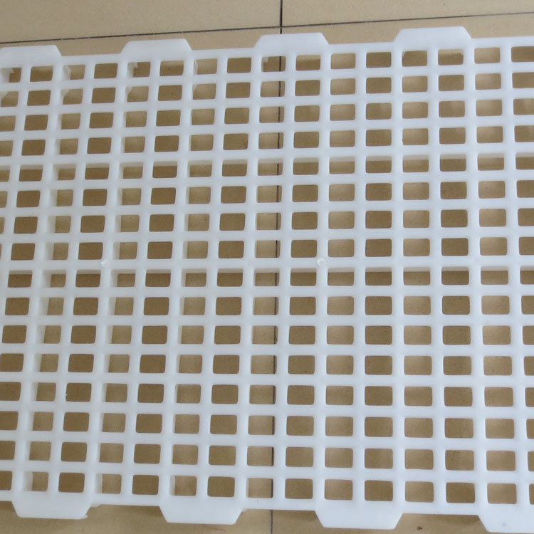 地板漏粪率高,易冲涮;无味;化学性能稳定,耐腐蚀,不吸水且易于清理,安装简便,产品安装采用支撑梁连接,施工简便。拆装会弯曲变形,弹性适度,能明显改善种鸡以及商品鸡的饲养管理条件。