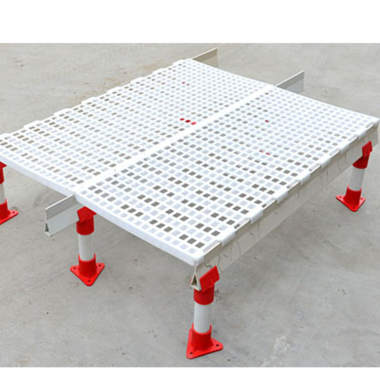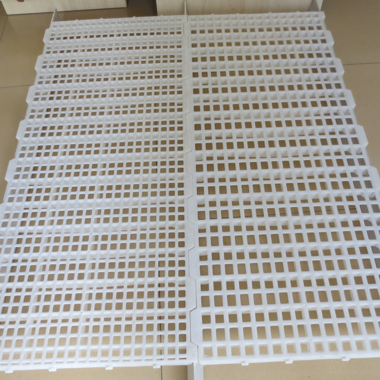 地板漏粪率高,易冲涮;无味;化学性能稳定,耐腐蚀,不吸水且易于清理,安装简便,产品安装采用支撑梁连接,施工简便。拆装会弯曲变形,弹性适度,能明显改善种鸡以及商品鸡的饲养管理条件。