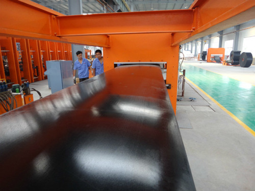 3、耐热输送带的寿命受胶带表面温度的影响相当厉害,并影响到盖胶掉块、带芯脱层,因此,当选择胶带时,考虑胶带表面温度极为重要,还有环境温度,带子返回时能否充分冷却;带速与中心距离等都是值得注意的;