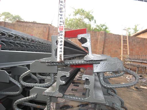 SGF120桥梁伸缩缝采用挤出成型的Q345(ASTM A709 Grade50)型钢,强度高。型钢为齿型结构,增加了伸缩量,提高了行车平稳,适用于高速公路及城市道路的桥梁伸缩缝,并能较好地适应桥梁的纵向位移。此种伸缩缝的伸缩量为0~120mm,介于80mm与160mm的伸缩量之间,避免使用伸缩缝的伸缩量为80mm的伸缩装置而造成行车不平稳,以及采用伸缩量160mm的伸缩缝而增加工程造价的问题。采用的锚固系统与GQF-MZLⅡ80相同,适用于各种梁端结构,其预留槽(包括铺装层)高度≥150mm。将W型氯丁橡胶伸缩密封条嵌入型钢内,防水、防尘性能佳。产品的表面防腐采用热镀锌工艺,防腐寿命长。产品在厂内整体定位组装,现场安装方便。