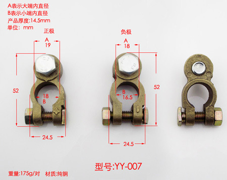 专业生产各种电瓶夹保护套,电瓶夹,铜质电瓶夹,合金电瓶夹,铅制电瓶夹等优质电瓶夹及电瓶夹护套,质量好、价格实惠,深受国内外客户的认可和亲睐。欢迎广大客户咨询。