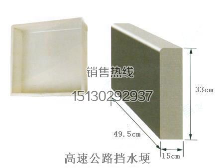 拦水埂模具为白色矩形塑料制品,挡水埂也叫挡水墙,挡水墙钢模具采用三毫米钢板,钣金成型,通过焊接,钣金,折弯,卡扣等工艺成型,产品坚固耐用,模具可拆卸,方便操作,材料为工程原料PP(聚丙烯)或者ABS树脂(丙烯腈、丁二烯和苯乙烯的三元共聚物),用于成批生产出具有一定形状和尺寸要求的拦水埂预制块,是道路工程建筑中使用的一种生产工具。