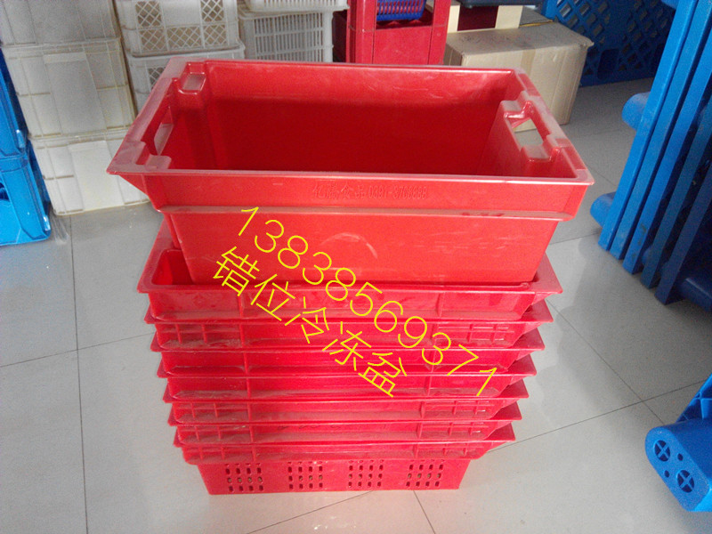 河南荣新开发的错位冷冻盆、冷冻筐,是冷冻食品行业的优秀助手:闲置时可以一个个叠放在一起,节省空间;装满货物时可一个个摞起来,保证货物完好无损。颜色可定做,可加公司logo、名称、联系方式。