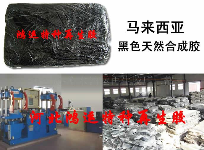 天然合成胶: 具有拉伸强度高、耐磨性好、环保无味道等特点。可直接使用黑色天然合成胶生产工程橡胶、汽车轮胎(外胎)、输送带、三角带、运动鞋底、橡胶地板等各种黑色橡胶制品,挤出模压均可,河北鸿运再生胶厂免费提供使用黑色天然合成胶的技术支持或配方指导。无味再生胶 丁腈再生胶 丁基再生胶 精细再生胶 无味再生胶 丁腈再生胶 丁基再生胶 乳胶再生胶天然合成胶:河北鸿运再生胶厂从马来西亚引进的天然合成胶主要成分为马来西亚等外天然橡胶以及胶清胶经过充炭2%,硬脂酸1%后制成的合成型天然橡胶。具有拉伸强度高、耐磨性好、环保无味道等特点。可直接替代越南3L天然胶等生产黑色橡胶制品,而黑色天然胶价格更比标准天然橡胶价格更有优势,可直接使用黑色天然合成胶生产工程橡胶、汽车轮胎(外胎)、输送带、三角带、运动鞋底、橡胶地板等各种黑色橡胶制品,挤出模压均可,在保证橡胶制品质量的同时可降低30%左右原料成本。河北鸿运再生胶厂免费提供使用黑色天然合成胶的技术支持或配方指导。HM 丁基再生胶,丁腈再生胶,三元乙丙再生胶 3#天然橡胶(黄色透明) 9#天然橡胶(纯黄色) 鸿运®2011年全球再生胶网推荐再生胶品牌。