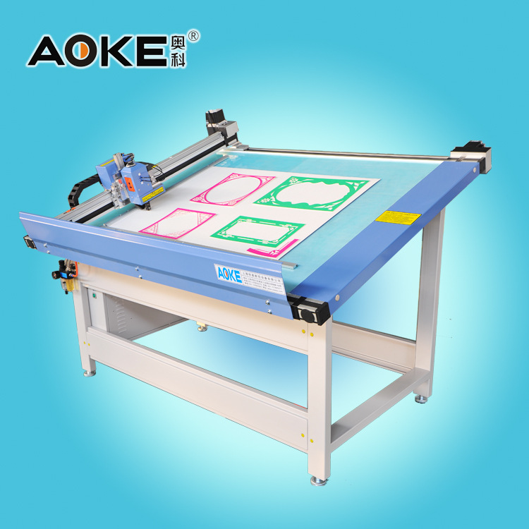 电脑卡纸机配备 AOKECUT 平台切割软件,操作更简单,方便。如同使用 “ 傻瓜相机 ” 一样容易。卡纸机实现一系列新的技术:任意正反切割;尖角切割完美;自动识别切割套孔;自动保存切割图档;文件导入前可以预览;工作计时等等