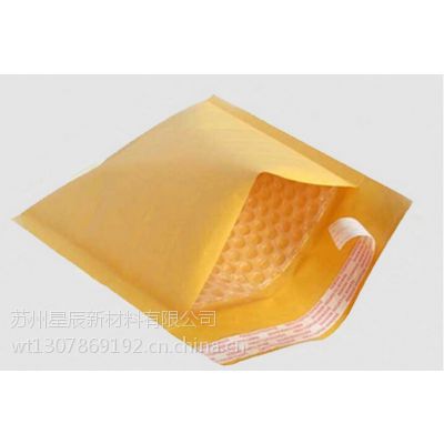 产品性能: 牛皮纸复合气泡袋外层为牛皮纸(黄色或白色),内衬气泡膜。表面平整,易书写;牛皮纸复合气泡袋可在不侵犯他人知识产权的情况下,根据客户要求印刷不同图案、商标及文字;内衬气泡膜具缓冲防震作用,防止物品因压,碰,跌落而损坏;牛皮纸复合气泡袋各层材料间不使用任何胶粘剂,完全无毒环保;牛皮纸复合气泡袋信封口自粘条设计,安全便捷。外层可按照客户要求定做为:铝箔,各种颜色的镀膜膜,共挤膜,防静电功能,印刷各种图案,加易撕条等。
