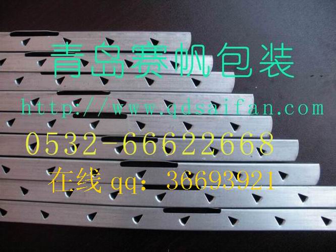 插件木箱包边钢带:尺寸:36mm~42.5mm(两直角边总宽度,可根据包装箱规格尺寸不同选用合适的宽度或长度,最大程度为客户降低成本)*0.7mm(钢带厚度),该产品以深冲级优质环保低碳镀锌钢带为原料(可提供原厂质保书,质量标准达到可出口欧盟等级,通过瑞士SGS认证),依照国际通用标准采用先进工艺一次冲压成型,具有坚固耐用,轻便美观的特点,同时根据客户使用胶合板厚度不同有两种冲齿长度(9.5mm/11.5mm)可供选择,完全按包装箱尺寸量身定做,所有钢带上冲孔及折弯位置都采用数控定位加工,尺寸可精确到毫米,是组装连接免熏蒸钢带插片式包装箱的理想选择。