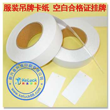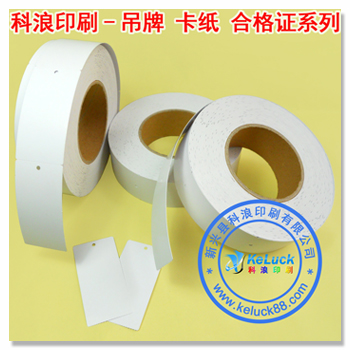 科浪印刷吊牌卡纸,采用铜版纸材质(无背胶),不防水,不防油,可撕破,打印效果好,面材光泽度适中,吊牌比一般的条形码标签都要硬,所以多应用于服装形行业。可通过条码打印机、热转印打印机打印,将吊牌设计成年历、书签、贺卡等令消费者喜爱、珍视、欣赏的收藏物,成为持久的广告