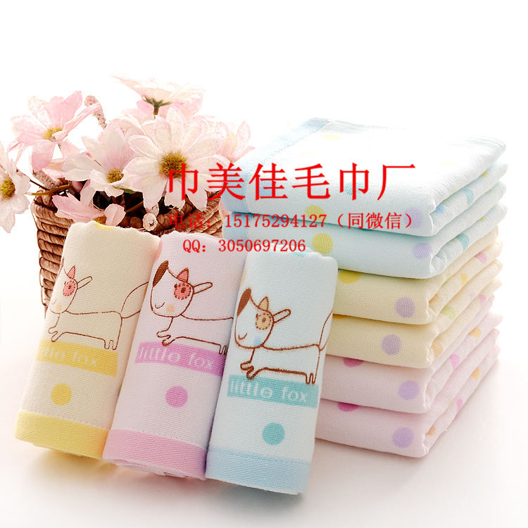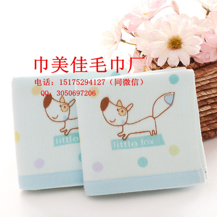 厂家直销儿童小毛巾 纯棉狐狸童巾 超柔吸水儿童毛巾 儿童口水