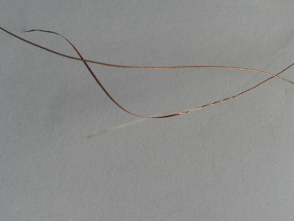 铜扁丝纱线,天素线 首先将铜丝压制成0.025*0.30mm的扁线,将扁线包覆在尼龙外,由此制得的功能性包覆纱保留着尼龙纱的柔软,并且具有优良的导电性、可纺性。