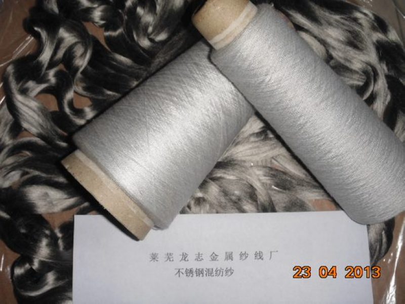 涤纶金属纤维混纺纱线是由涤纶短纤维与金属短纤维混纺而成,金属纤维混纺纱具有耐洗涤、质量轻、价格低等优点,并且此纱线也满足了纺纱、织造、缝制等加工要求。另有权威机构对不锈钢纤维混纺织物研究显示,金属纤维混纺纱的织物具有较好的导热性能,金属纤维含量越高,织物的导电性能越好;经纬行均含有金属纤维的织物静电屏蔽性能较单向好。