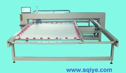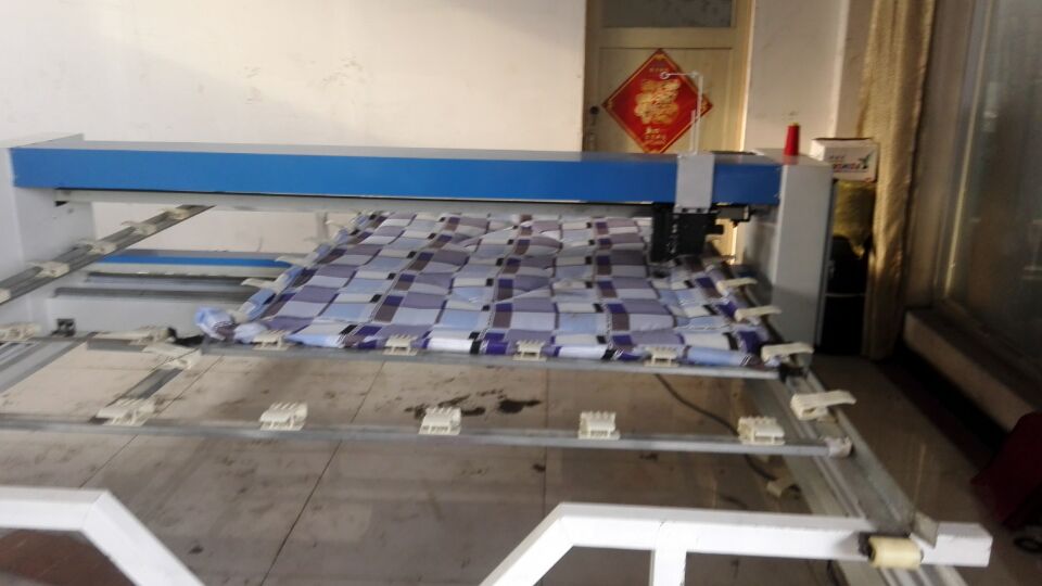 全移动新型电脑绗缝机,占地面积小,重量轻,花型走型精准.适用于加工批量棉被、羊毛被等图案的绗缝 机械晃动小,精度高,电器配置性能高。起始终点能自动补针,花型能放大,缩小,针距可调,细化,使用大容量梭子可高速运行,工作效率高,也可安装在小型卡车上做流动的加工.是理想的经济型家纺设备