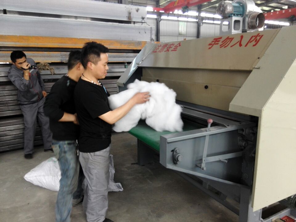 其中对各类化纤原料的加工效果最佳,比如毛线,丝棉,是生产毛线被,丝绵被的最佳机械。