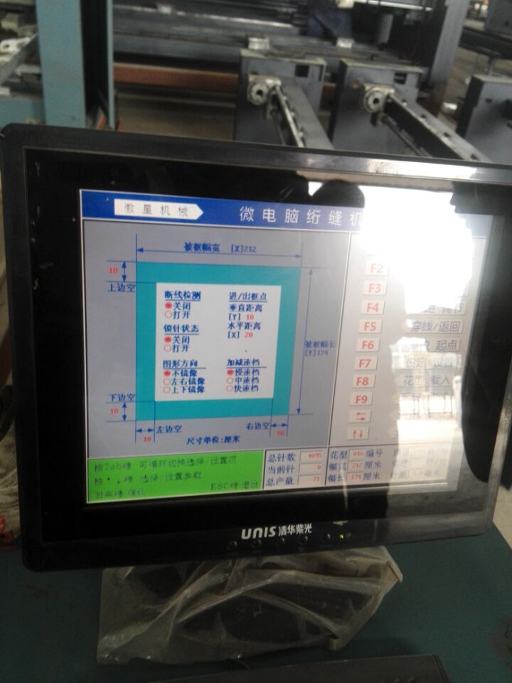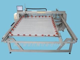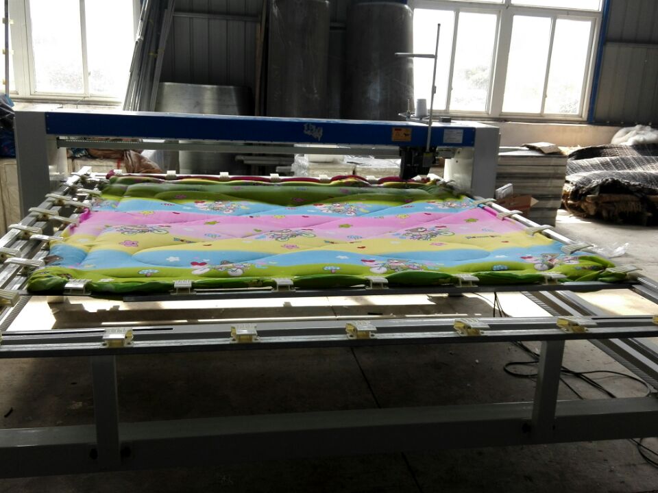 全移动新型电脑绗缝机,占地面积小,重量轻,花型走型精准.适用于加工批量棉被、羊毛被等图案的绗缝 机械晃动小,精度高,电器配置性能高。起始终点能自动补针,花型能放大,缩小,针距可调,细化,使用大容量梭子可高速运行,工作效率高,也可安装在小型卡车上做流动的加工.是理想的经济型家纺设备