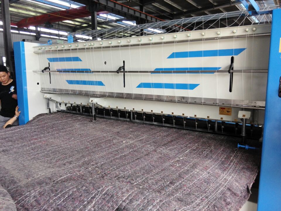 引被机又称绗缝机,套被机,缝被机,扎被机等,全自动引被机,不留被子头,一人操作,方便易懂,是我厂开发研制的新型第四代产品,关键部件精心设计,两分钟可引一床被,线条笔直好看,针距均匀大小可调,有七针、九针、十针机型,长度不限,是取代传统跪爬式一针一线引被的高科技产品,所用功率为1.5KW两项电机,设计合理,安全可靠、整体美观大方,本机长2.6米,宽1.2米,高1.3米,价格低廉,回本快,是老百姓都能接受的价格,是弹棉花用户家庭致富的首选产品。