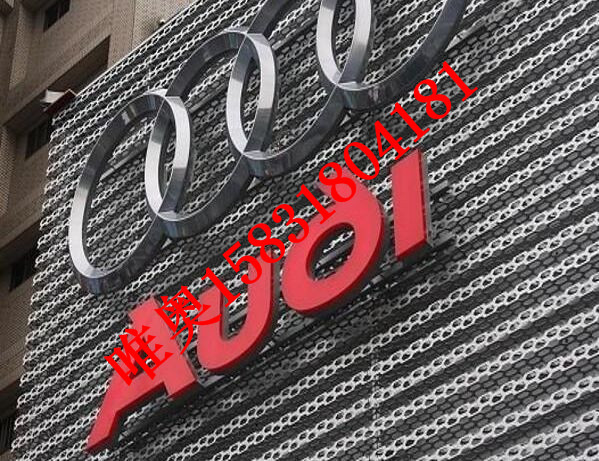 奥迪外墙冲孔装饰板、奥迪外墙冲孔氧化幕墙,采用优质铝合金为底材,通过模具冲压或者雕刻机加工得到,奥迪外墙冲孔幕墙可以选择氧化表面处理或者氟碳喷涂处理加工,棱形冲孔网板,奥迪4S店指定外墙产品,奥迪4S店专用外墙冲孔铝板装,各种异型幕墙,双曲幕墙板,造型幕墙板,可根据各个品牌汽车4S店设计图纸加工生产,各种板式,各种冲孔孔径,涂层颜色任意定制。