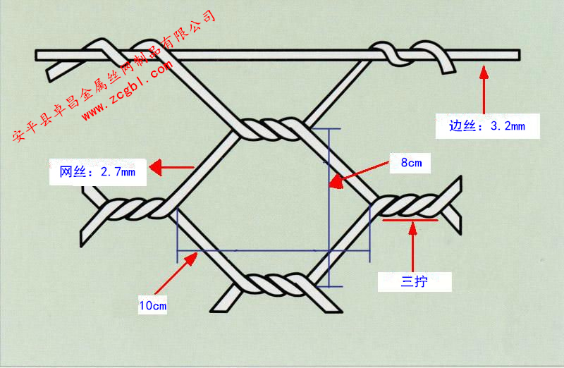三绞固滨笼的尺寸可按图纸设计要求生产,一般机器最宽到4米,长度任意,但国内格宾网垫的常规尺寸是6*2*0.3m,网孔:6*8cm 丝径:2.0mm 材料:镀锌、镀锌包pvc( pvc的颜色通常为灰色或是绿色)、高尔凡俗称锌5%或10%铝合金、锌铝合金包pvc,锌铝合金材料是此类产品里最优质的,使用寿命也最长70~80年!网箱尺寸一般为2*1*1m 4*1*1m 1*1*1m等,网垫尺寸一般为6*2*0.3m 6*2*0.17m 4*2*0.35m等。