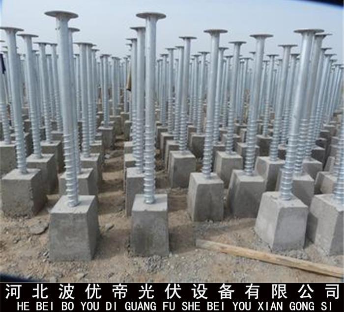 螺旋地桩是一种新型的太阳能光伏配套产品,适用于各大太阳能光伏、风能及建筑类行业、如太阳能电站桩基、广告牌桩基、标志旗桩基、木质房屋桩基等,适用于各种地质,如粘土、戈壁滩、砾石等,其高负荷性能、稳固性、抗沉降性及抗拉拔性,深受业内同行的青睐。