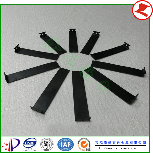 具体应用实例:电积金属用钛阳极、蚀刻液回收铜用钛阳极、MMO阴极保护用钛阳极(钛阳极带,钛导电带)、电催化氧化焦化废水处理用钛阳极、电解海水制氯用钛阳极、带状钛阳极、污水处理用阳极、钛导电带、氨氮废水处理用钛阳极、电解银催化剂用钛阳极、次氯酸钠发生器用管状阳极、二氧化氯发生器用钛阳极、游泳池消毒用钛阳极、氯碱工业用钛阳极、电镀用阳极