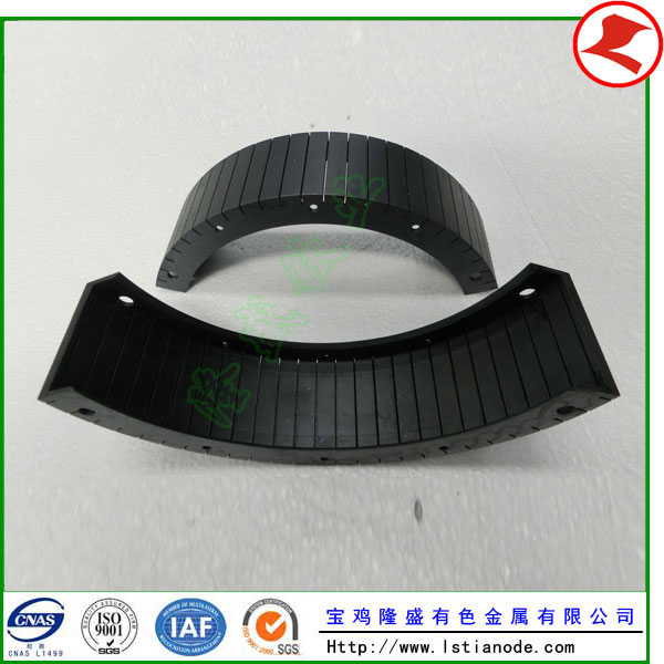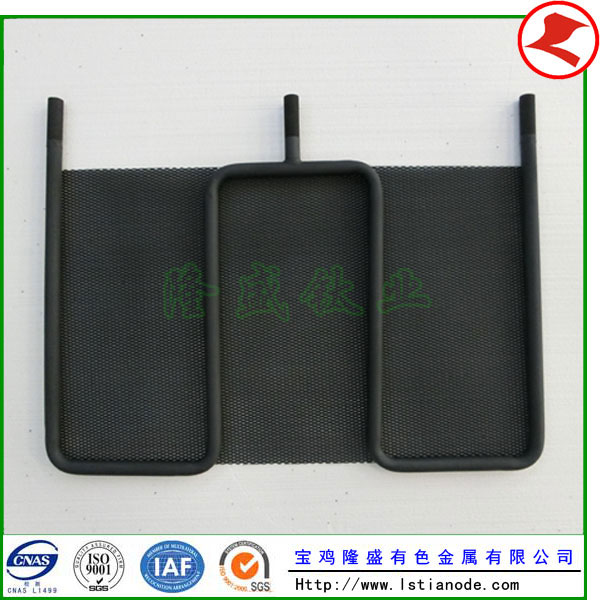 析氧钛阳极在酸性、中性电解质溶液中具有优良的电化学性能,长期使用寿命能满足各类工业电解、电镀、有机电合成、废水处理和阴极保护等需要。阳极在使用过程中不溶解、不污染产品,而且长期保证尺寸稳定,电解槽电压不轻易发生变化。