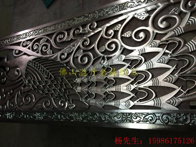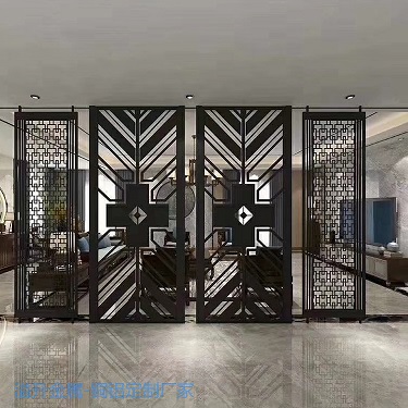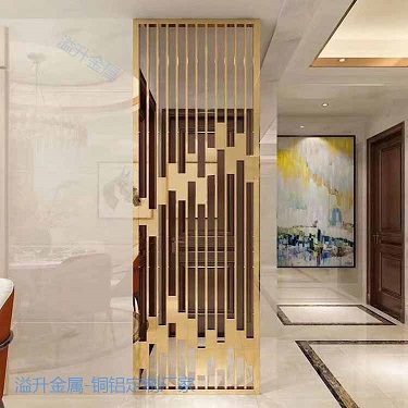 酒店别墅铝艺屏风装饰效果图 佛山溢升 本公司为配合广大客户需求,可根据客户要求定制合适尺寸,超大尺寸需考虑分段组装 拼接,公司拥有经验丰富的技术人员和安装团队,可协助客户设计方案、现场测量尺寸、安 装产品等工作。欢迎致电张经理定制