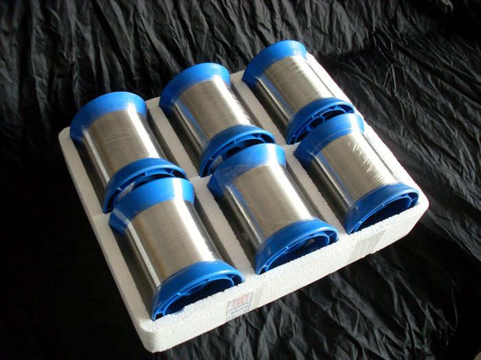 不锈钢丝微细化产品是近20年发展起来的新型工业材料和高新技术、高附加值产品。它既具有化纤、合成纤维及其制品的柔软性,又具有金属本身优良的导热、导电、耐蚀、耐高温等特性。其不锈钢金属微丝面料所特有的记忆性和褶皱效果,光彩闪烁,亮丽时尚,以及永久防静电、防辐射和抗菌作用,使之在最近几季的纱线流行趋势中占据了越来越重的位置。不锈钢丝平直,表面光亮无斑点,无夹丝和断丝,已达到欧盟的技术标准,并通过了国家质量技术监督部门监测。公司可根据客户的要求定制各种规格(抗拉强度、延伸率)的不锈钢丝产品。不锈钢丝(不锈钢纤维)特有的导电性,导热性,高强度,高弹性,耐磨防腐性,耐高温,在氧化气氛中有热稳定的特性,以很好的屏蔽,防磁防辐射,防静电的功能,开始大量应用于各类纱线,防辐射防静电复合增强材料,防辐射屏蔽服、防静电工作服及高目数滤网、高精过滤器, 高精度印刷丝网, 电子显示率光器,光纤通讯电缆,高传导性屏蔽网,安全气囊等,不锈钢微丝及其制品作为一种工业基本材料广泛应用于石油化工、航空航天、纺织、印刷、电子通讯、环保、医疗和日常生活用品等诸多领域,有望用于核工业。