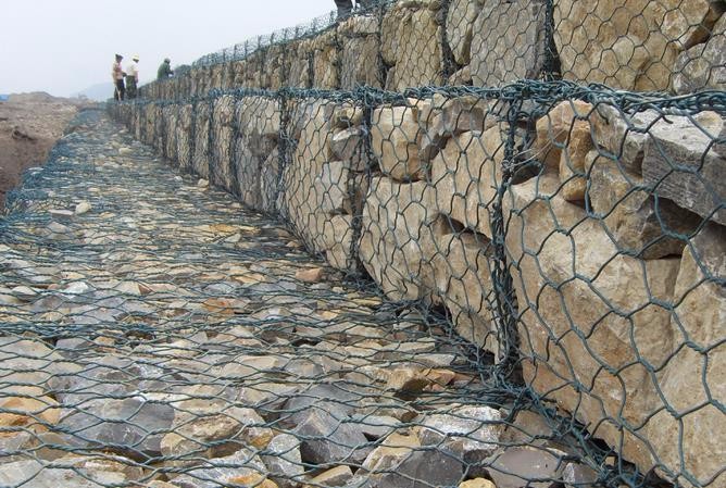 承德加筋麦克垫厂家 格宾网护垫主要用作河道、岸坡、路基边坡护坡结构。既可防止河岸遭水流、风浪侵袭而破坏,又实现了水体与坡下土体间的自然对流交换功能,达到生态平衡。坡上植绿可增添景观、绿化效果。 格宾网护垫由隔板分成若干单元格,为了加强格宾网护垫结构的强度,所有的面板边端均采用直径更大的钢丝。格宾网护垫产品规格(具体尺寸可以根据工程设计要求定做 (一)河道整治工程护岸和护底; (二)水库工程护岸和护坡; (三)闸后消能工防冲加固; (四)有地下水溢出的渠道护面和冬季运行的渠道护面。 三、工程特点 (一)柔性结构,适应地基变形能力强。在地基有微小变形时,结构能进行自身微调,不会因地基发生不均匀沉陷而导致结构整体破坏。 (二)有较强的透水性和抗冲性,可承受最大水流速度4m/s—6m/s的冲刷。 (三)抗冻胀和冻融剥蚀能力强。 (四)耐腐蚀。经表面防腐处理的低碳钢丝,经久耐用,能抵抗盐碱侵蚀破坏。 (五)经济适用,施工方便。可因地制宜利用当地石料资源,不用水、水泥、电力及模板,不受气候和地下水影响,与其他护岸护坡结构相比投资省、施工快、适用性强。 (六)生态环保,美观大方实用。 {}陡坎护岸工程应用 陡坎护岸工程宜采用格宾网护岸,以抵抗侧向土压力和迎水面水流或波浪的淘刷。要求填方部分必须进行放水预沉分层压实或夯实,防止因地基下沉导致格宾内倾,影响防护效果。 锌铝合金石笼网是我公司在一般镀锌石笼网基 础上新近研发的一种性能更强的护堤网,与普通的镀锌石笼网相比,锌铝合金石笼网涂层具有粘附性强,耐磨性和抗腐蚀性更好,施工性能优越等特点。锌铝合金石 笼网锌铝合金涂层具有和喷铝层类似的稳定性,又具有和喷锌层类似的电化学保护性,是一种较为理想的抗海水腐蚀的保护层。 锌铝合金石笼网的锌铝合金丝用于编织石笼网,其使用寿命可延长5-10倍。热镀锌铝合金石笼网由各种规格的10%铝锌合金低碳钢丝编织而成。锌铝合金 石笼网工程现场填充石料组装形成柔性的、透水的、整体的支挡结构,用于生态防护工程。石笼网丝采用高镀锌钢丝或者10%锌铝合金钢丝低碳钢丝制作而成,如 果环境条件比较恶劣,污染比较严重,可以在钢丝的表面涂塑(PVC),以增强网丝的抗腐蚀性能。 在国际上,大多数使用高镀锌钢丝或铝锌合金钢丝,我国使用石笼防护是近几年的事情,而国外早就对石笼做过研究,发现锌铝合金石笼网的使用年限,主要取决于钢丝的寿命。 格宾护垫是由生态格网结构的钢丝网片组成的专用于生态水利防护项目建设(如:边坡防护加固、渠道修建、河床加固等)的高度在0.3-1.0m护垫,该产品不仅用于堤坝护坡,还可满足加固保护河道、堤防的作用,又能够起到防止水土流失的作用,而且利用网中填充物的缝隙还能生长植物,绿化环境,在堤坝护岸的条件下,增添自然景色,做到使水利工程与自然环境完美结合。 格宾护垫生产工艺、材 1.护垫由高抗腐蚀、高强度、具有延展性的低碳钢丝或者包覆PVC的以上钢丝使用机械编织成厚度远小于长度和宽度的垫形工程构件,根据ASTM和EN标准,所使用的低碳钢丝直径根据工程设计要求而不同。一般介于2.0-4.0mm之间、抗拉强度不少于38kg/m2、金属镀层重量一般高于245g/m2、其双线绞合部分的长度不得小于50mm.以***绞合部分钢丝的金属镀层和PVC镀层不受破坏该结构首要用于水利堤防、岸坡、海曼等的防冲刷布局,具有柔性、对地基适应性的特点。 格宾挡墙是采用低碳钢丝通过六边形双绞方式编织成网面后组装而成的工程单元构件,网箱中填充卵石或块石形成护岸挡土结构,近几年来广泛用作河道两岸的挡土结构,原因在于该结构不仅稳固性和防冲刷性能强而且能够营造适合周边环境的水景观效果,充分体现人与自然和谐共处的治水思路。 格宾挡墙参数 1.网孔:6*8cm 8*10cm 9*11cm 10*12cm 12*15cm 18*22cm等特殊规格可加工定做。 2.丝径:2.0mm-4.0mm 3.规格:2mx1mx1m,3mx1mx1m,4mx1mx1m,2mx1mx0.5m,4mx1mx0.5m,还可按客户要求进行生产。 4.材质:PVC包塑 高尔凡 铅丝 热镀锌 镀锌(含锌量):电镀:10-25g/㎡;热镀:30-300g/㎡ 承德加筋麦克垫厂家格宾挡墙优点: ⑴ 生态性能突出。格宾网箱内填充卵石或块石孔隙较大,可以使河水和网箱后土体内的地下水自然交换,增强水体的自净能力从而改善水质,还可以为各类水生动植物提供生存空间,建设生态水利工程。 ⑵ 外表美观。网箱的表面长出的绿色植被,能够很好的与周围的自然环境相互融合;插植等人工方式更可以使外观达到人为的设计视觉效果,美化环境。 ⑶ 透水性强。格宾具有天然的透水性,可以迅速降低网箱后填土由于降雨等原因导致的过高地下水位,减小孔隙水压力,保持土体强度,防止发生滑动;且不用设置挡土结构的排水设施,节省成本,加快工程进度。 ⑷ 整体性和稳定性好。格宾网箱在工地现场绑扎成整体,属于柔性防护结构,可以很好的适应基础的沉降变形,不需要设置伸缩缝,且不影响美观效果。相比其它挡土结构整体稳定性大大加强。 ⑸ 造价低。网箱填充石料不需要大粒径块石,节省大块石材,后期维护费用少。 ⑹ 施工便捷。格宾网箱为工厂生产制作的半成品,在施工现场按照施工图进行组装即可,还可以水下施工,不需要模板,操作简便,无需熟练的技术工人,受气候干扰小,既可***施工质量又可加快施工进度 ⑺ 耐久性