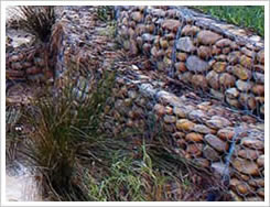 石笼网是金属线材编织的角形网(六角网)制成的网箱,使用的金属线径是根据六角形的大小而不同.如果是金属镀层的金属线六角形,则使用线径为2.0mm到4.0mm的金属线,如果是PVC包覆的金属线编织的六角网,则使用外径为3.0mm到4.5mm的PVC(金属)线.外框边缘的线则使用比六角网线粗一号的线。