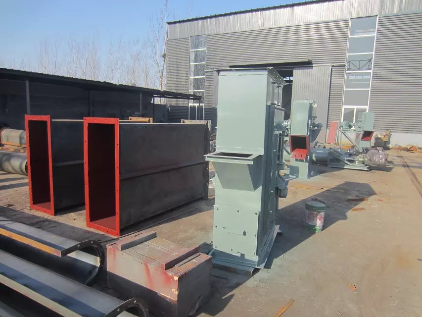 TD型斗式提升机由运行部分(料斗与牵引胶带),带有传动滚筒的上部区段,带有拉紧滚筒的下部区段,中间机壳,驱动装置,逆止制动装置等组成,适用于向上输送松散密度ρ<1.5t/m3粉状、粒状和小块状的无磨琢性和半磨琢性散状物料,如煤、砂、焦末、水泥、碎矿石等。 TD型斗式提升机结构形式:传动装置TD型斗提升机的传动装置有两种形式分别配有YZ型减速器ZQ(或YY)型减速器。YZ型轴减速器直接装在主轴轴头上,省去了传动平台、联轴器等,使结构紧凑、重量轻,而且其内部带有异型辊逆止器,逆止可靠。该减速器噪音低,运转平稳,并随主轴浮动,可消除安装应力。TD斗式提升机由提升机上、下链轮,皮带,挖斗,丝杆,进出料口,箱体,电机减速机等组成,具有输送量大,提升高度高,运行平稳可靠,寿命长显著优点,其主要性能及参数符合JB3926----85《垂直斗式提升机》(该标准等效参照了国际标准和国外先进标准),牵引圆环链符合MT36----80《矿用高强度圆环链》,本提升机适于输送粉状,粒状及小块状的无磨琢性及磨琢性小的物料,如:煤、水泥、石块、砂、粘土、矿石等,由于提升机的牵引机构是环行链条,因此允许输送温度较高的材料(物料温度不超过250 ℃)。该提升机的转速每分钟不能超过85转,转速过高,会出现卸料不净,挖斗留有余料等情况。普通皮带的斗式提升机正常输送高度一般不会超过20米,钢丝绳芯的皮带斗式提升机的输送高度最高可达80米。