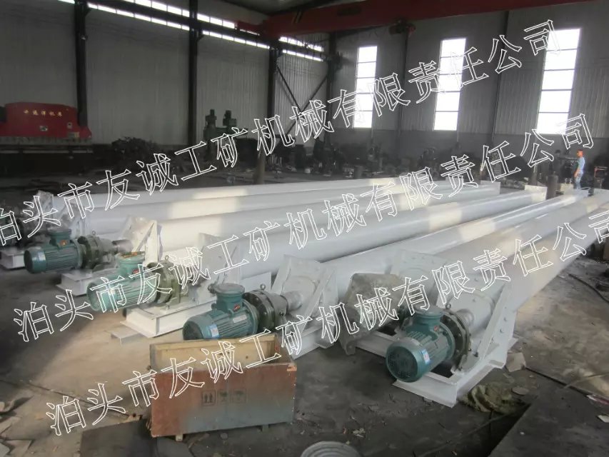 无轴螺旋输送机有特殊卫生要求的物料.无轴螺旋输送机的性能特点:是无轴螺旋输送机与传统有轴螺旋输送机相比,由于采用了无中心轴设计,利用具有一定柔性的整体钢制螺旋推送物料,因而具有以下突出优点:环保性能好. 与有轴螺旋输送机相比,重量和成本都会减少不少。无轴螺旋输送机与传统有轴螺旋输送机相比,由于采用了无中心轴设计,利用具有一定柔性的整体钢制螺旋推送物料,因而具有以下突出优点:抗缠绕性强。无中心轴干扰,对于输送带状、易缠绕物料有特殊的优越性。无轴螺旋输送机用途: xLS型系列无轴螺旋输送机用于污水处理厂输送中细格栅其栅条净距50mm的除污机栅渣和压滤机泥饼等物料。 环保性能好。采用全封闭输送和易清洗的螺旋表面,可保证环境卫生和所送物料不受污染、不泄漏。 扭距大、能耗低。由于螺旋无轴,物料不易堵塞,排料口不堵塞,因而可以较低速度运转,平稳传动,降低能耗。扭距可达4000N/m。输送量大。输送量是相同直径传统有轴螺旋输送机的1.5倍。输送距离长。单机输送长度可达60米。并可根据用户需要,采用多级串联式安装,超长距离输送物料。能机动工作。我公司开发生产的移动型无轴螺旋输送机,能机动工作,一机多用。既可下方出料,又可端头出料。采用特制衬板,该机可在高温下工作。结构紧凑,节省空间,外型美观,操作简便,经济耐用。