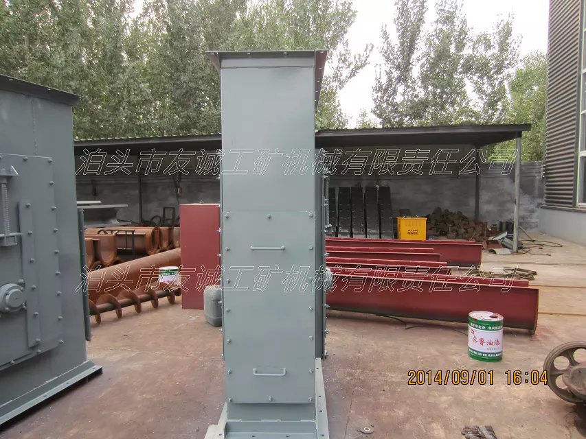 (2)进料口位置太低一般,提升机在生产时,料斗自行盛取从进料口进来的物料。若进料口位置太低,将导致料斗来不及盛取物料,而物料大部分进入机座,造成料斗舀取物料。而物料为块状,就很容易引起料斗变形、脱落。这时,应将进料口位置调至底轮中心线以上。