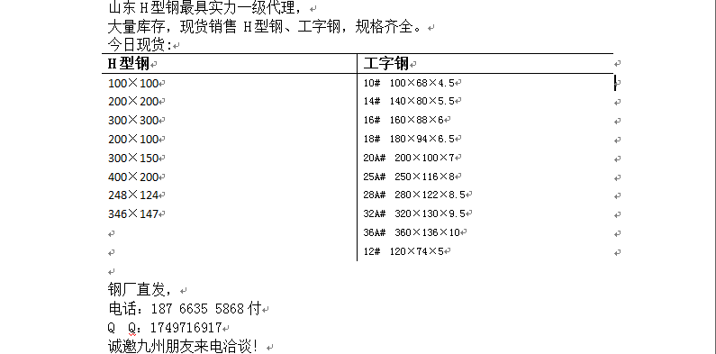 【淮南市】300×150×6.5×9h型钢多少钱一吨? H型钢的主要材质有Q235B、SM490、SS400、Q235B、Q345 、Q345B等。
