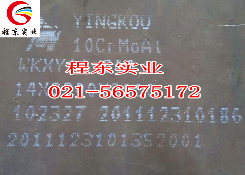 10CrMoAl上海程东实业专供耐海水腐蚀钢10CrMoAl,10CrMoAl是一种耐海水腐蚀的专用钢材。10CrMoAl材料,是沿海电厂,沿海油田,沿海天然气及石化厂输送水,油气及含海水介质的最理想的管路及加工件制作材料。还可用于制做阀门的法兰盘。1、10CrMoAl材料中的Al(铝),能与空气中的O(氧)化学反应生成Al2O3(三氧化二铝).从而行成保护膜,既防腐又耐腐。 2、10CrMoAl中的Cr(铬),Mo(钼),离子在海水中能自动补充Cl(氯)离子对钢材点腐蚀形成的空隙,开成致密保护层,阻止点腐蚀向纵深发展。进而起到耐腐,使使用寿命加长。10CrMoAl材料焊接性能较好,配有专用耐腐焊条“海O3”,无特殊焊接要求。10CrMoAl可供货规格:3-60*1500-2000*6000-11000,详情请电询:021-56575172.