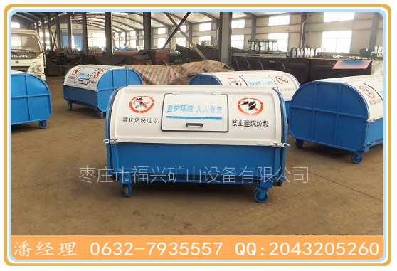 枣庄市福兴矿山设备有限公司专业生产、批发各种款式的3立方垃圾箱。