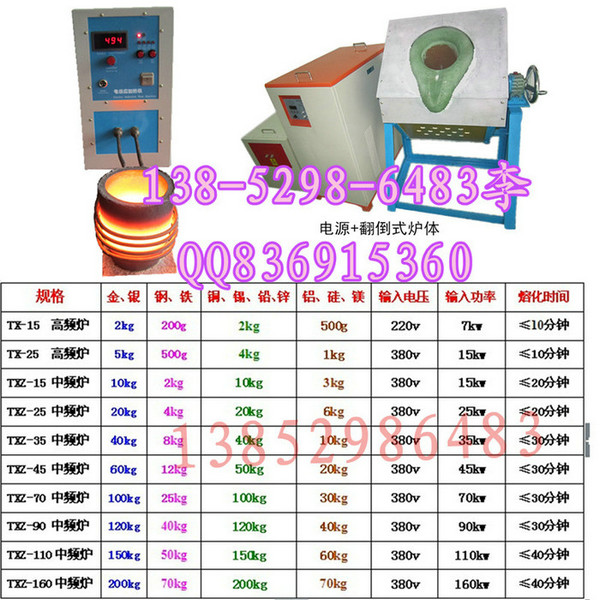 本公司专业生产 感应熔金炉、熔银炉、熔铜炉、熔铝炉、熔铁炉、 小型实验炉、小型高频熔炼炉,中频熔炼炉,电源采用IGBT进口功率器件,更加集成化小型化,有效输出功率达到90%以上,省电节能,比传统可控硅中频节能40%!