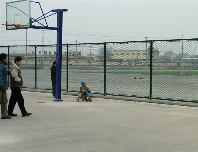 篮球场围网材质:优质低碳钢丝(勾花网)