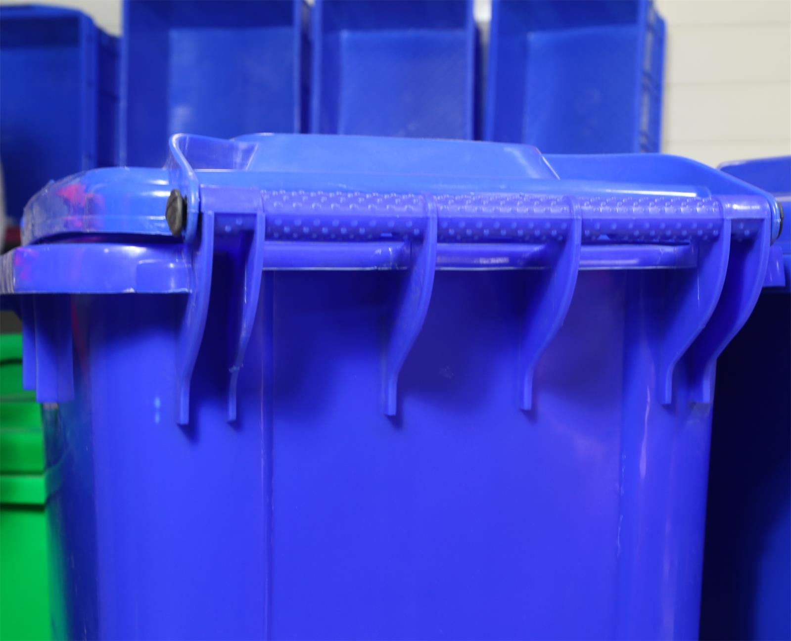 204L环卫可挂车塑料垃圾桶性能特点 裙边内部设有网状加强筋,加强裙边力,可确保在与垃圾车配套作业时,垃圾桶与翻桶架紧密结合,既降低噪音又可减少桶盖与桶身之间的撞击,延长桶的使用寿命。