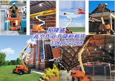 高空作业车广泛应用于邮电通信、政建设、消防救护、建筑装饰、高空摄影以及造船、石油、化工、航空等行业。是用于电气线路检修、高空作业清洗、树木修剪、政管理、供电维修、路牌标志安装等高空作业的理想工具。它具有机动灵活,转移迅速,覆盖面广,便于接近等优点。按其升降机构的形式分为伸臂式(直臂式)、折叠臂式{曲臂式}、垂直伸降式(剪叉式)和云梯式等四种基本形式,我公司出租的高空车系列产品主要是当今世界高空车制造排行业的美国JLG公司出品的前3种型式的产品。换向平衡,操作灵活方便、工作效率和安全性能高。