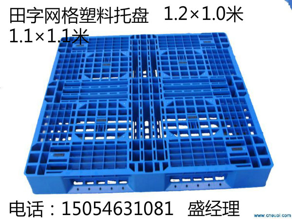 塑料托盘 叉车塑料托盘,在外形款式上主要有:九角底,田字底,川字底,双面,钢塑符合,以及平面、网格等多个类型产品