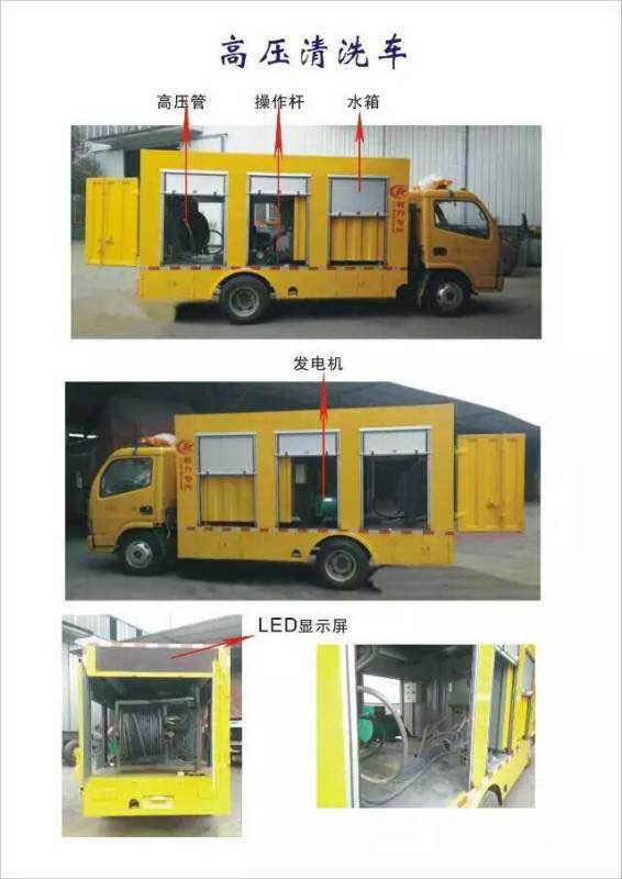 湖北程力东风小多利卡污水处理车该车装有电机,可油电两用,在有外接电源的情况下可外接三相电进行污水处理作业,没有外接电源则可以通过汽车发动机带动污水处理设备作业。这样既节省了处理成本,又增加了底盘使用寿命。同时,我公司生产的还有污水处理带高压清洗车、供水抢险车、新型高压清洗车(可将管道中冲洗出的污物抽入车中进行处理,处理后的污水可接入高压泵循环使用)、散装粮食运输车等。