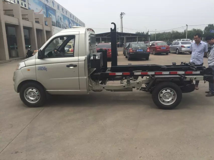 勾臂垃圾车又称车厢可卸式垃圾车。上装部分由:拉臂主油缸、附车架、翻转架、支撑腿(选装)、锁紧架、锁紧油缸及多路换向阀等组成。一车可配备多个垃圾斗(分为船形斗、方形斗,),实现与多个地点的垃圾斗联合作业。垃圾斗后盖为可向上打开的活动门,并用4个锁紧栓锁紧(防止在垃圾运输过程中垃圾厢内的垃圾撒在路面上造成二次污染),打开锁紧栓可将厢内垃圾一次性自卸出来,完全液压操作,使用方便,操作简单。该车广泛适用于城市街道及学校垃圾的处理。有特殊要求的用户可根据用户要求进行适当改装。