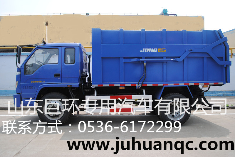 对接式垃圾车又称垃圾压缩站对接式垃圾车:是用于城镇垃圾压缩站内的垃圾转运、卸料作业的专用车。该车操作系统是有液压控制系统来完成,控制方式可以为手动或电启控。压缩垃圾站在将垃圾压缩成块后将垃圾箱体垂直举起,并打开压缩箱排泄门,这时垃圾车箱体后门向上旋转开启,垃圾车后门与压缩箱后门对接,之后垃圾块被压缩箱内的推板水平推进到垃圾车箱体内,完成垃圾装载后关闭垃圾车后门,将垃圾运到垃圾处理地进行倾卸。改垃圾车的收运方式是目前国内广泛采用的垃圾压缩站垃圾转运方式,可以实现一车多站,大大降低了配备成本和空间等等。其专用装置的功能均以汽车发动机为动力,通过液压机构手动或电控,气控来实现。车辆的箱体采用优质碳钢板全密封焊接结构,具有强度高,重量轻,不产生二次污染等优点。
