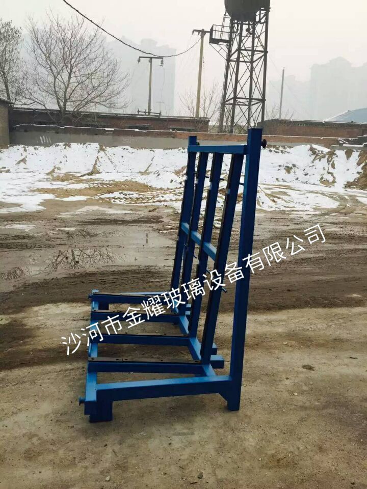 L架是集仓储、搬运于一体的多功能玻璃存放架,是存放零散裁片或中空成品玻璃等的优质选择。架子角度严格控制在90度,刚下线的中空玻璃绝不会产生滑片。该架子既可用地牛、叉车进行平稳移位,也可用行车直接装卸,闲置或回空运输时一摞可叠加10个,节省库存或运输空间,提高仓库利用率。 常用规格有: 1.长1800x高1600x宽750mm,玻璃有效存放厚度达540mm,小巧灵便,适合小货车架子背对背运输。 2.长1800x高1600x宽950mm,玻璃有效存放厚度达690mm,适合中型货车运输。 3 .长1800x高1600x宽1150mm,玻璃有效存放厚度达890mm,适合大型货车运输。 A字架分为仓储架和运输架两种。产品均选用国标材质,安全可靠。运输架每侧可存放4包大板玻璃(长和高可定做),满足玻璃长途运输要求。两种架子可根据玻璃规格、客户要求定做。 原片放置架。该架针对大型玻璃厂和工厂,对产品规格单一的玻璃,大规模储藏使用,每排可堆放几十包玻璃。我们可按机器规格型号或客户图纸要求加工。沙河市金耀玻璃设备有限公司 。纪杰,13191622082。