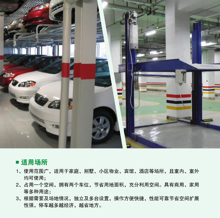 莱贝停车设备主要产品有两柱双层立体停车设备,四柱双层立体停车设备,俯仰双层立体停车设备,升降横移式停车设备、地坑式立体停车设备等。