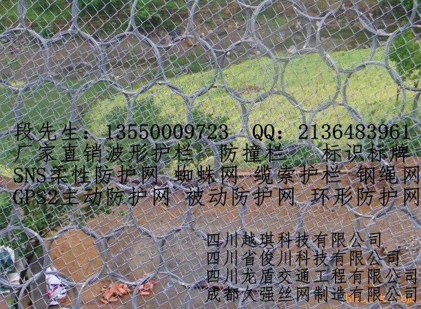 动防护网,RXI050被动防护网,RXI075被动防护网,RXI100被动防护网,RXI150被动防护网,RXI200被动防护网,DO/08/250/200/150+SO/2.2,R5/7/9/12/19/3/300+SO/2.2,四川成都重庆贵州贵阳云南昆明甘肃兰州西藏拉萨青海广西南宁等地。 被动系统的安装 1基座安装 安装基座的基础顶面应平整,一般不应高出地面10cm,以使下支撑绳尽可能紧贴地面;基座安装时必须使其挂座朝向坡下。 2钢柱与拉锚绳安装 2.1通过与基座间的连接和上拉锚绳来实现钢柱的固定安装。 2.2通过拉锚绳调整钢柱方位满足设计要求,误差不得大于5o。 2.3拉锚绳绳端用不少于4个绳卡固定。 2.4上拉锚绳上的减压环宜距钢柱顶0.5m~1m。 3支撑绳安装 3.1除支撑绳端穿入挂座并用不少于4个绳卡固定外,其余同一位置处的两根支撑绳应采用一根穿入挂座内、一根用两个绳卡固定悬挂于挂座外侧的交错布置方式,且同一根支撑绳在两相邻位置处亦应内外交错穿行。 3.2上支撑绳一端应向下绕至基座的挂座上用绳卡固定。 3.3减压环宜位于离钢柱约0.5m处,同一侧为双减压环时,两减压环间应相距0.3m~0.5。 3.4支撑绳固定前应张拉紧,系统安装完毕后上支撑绳的铅直垂度不应超过柱间距的3%。 3.5并结绳卡的紧固程度严禁完全紧固。 4钢丝绳网铺挂与缝合 4.1钢丝绳网只能与支撑绳或临近网边缘缝合联结,严禁与钢柱和基座等构件直接联结。 4.2在两个并接绳卡之间或并接绳卡与无减压环一侧钢柱之间,缝合绳应将网与两根支撑缝合缠绕在一起;在并接绳卡与同侧钢柱之间,缝合绳应将网仅与不带减压环的一根支撑绳缝合缠绕在一起。 4.3缝合绳两端应重叠1.0m后各用两个绳卡现钢丝绳网固定。 5铁丝格栅铺挂 5.1格栅应铺挂在钢丝绳网的内侧即靠山坡侧,叠盖钢丝绳网上缘并折到网的外铡10cm以上。 5.2格栅底部宜沿斜坡向上敷设0.5m以上,并宜用土钉或石块将格栅底部压住。 5.3每张格栅间重叠宽度不得小于5cm