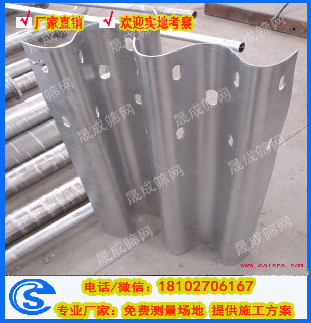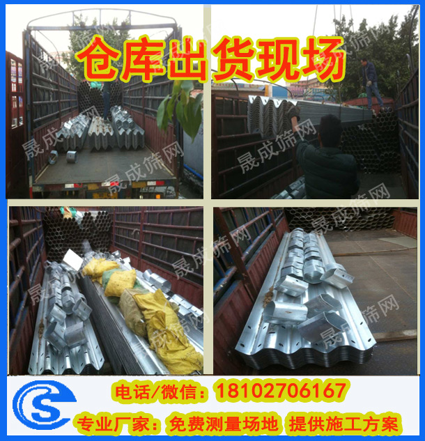 2、三波形梁护栏板的规格长4320毫米,波宽505毫米,波高85mm,板厚:4mm;理论重量:102kg,配合130*130的方管立柱。