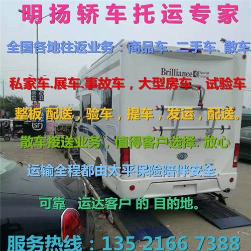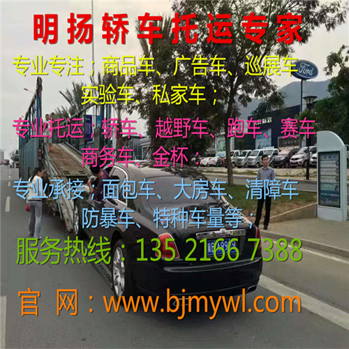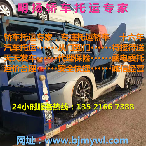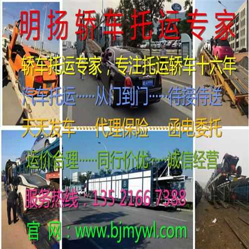 北京明扬物流【135 2166 7388 / 010-6120 6687】是专业从事轿车托运的物流公司、现掌控全国轿车托运网点及配送等业务、无论你的车在哪个城市我们都能帮您安全托运到位、只需您一个电话。全年无假日承接私家车托运、商品车托运、巡展车托运、二手车托运、广告车托运、电动车托运、4S点试驾车托运等、拖车送保险门到门服务、国内往返拖运、全程保险、让您无后顾之忧、拖车我们是认真的……